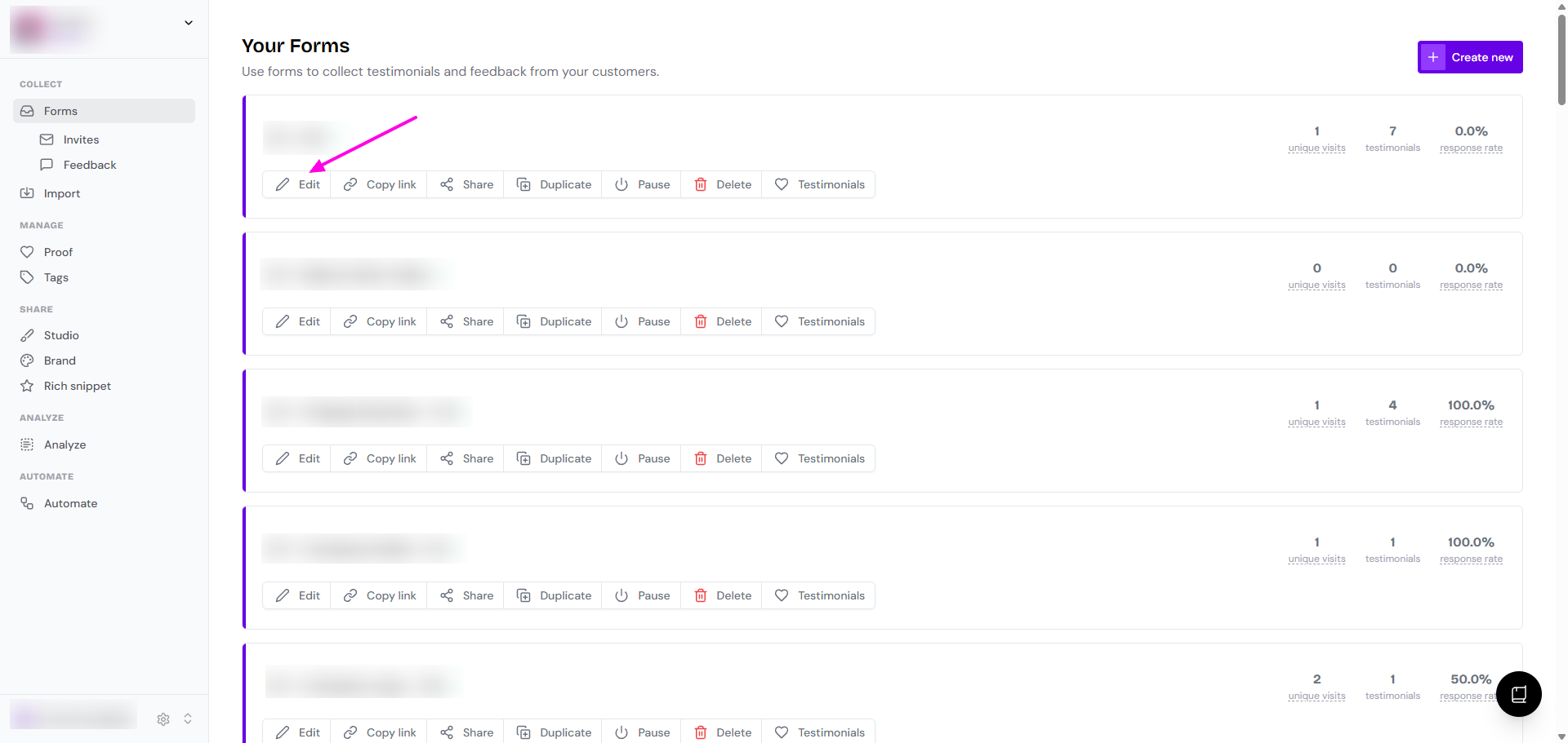 Go to Forms page: https://app.senja.io/forms