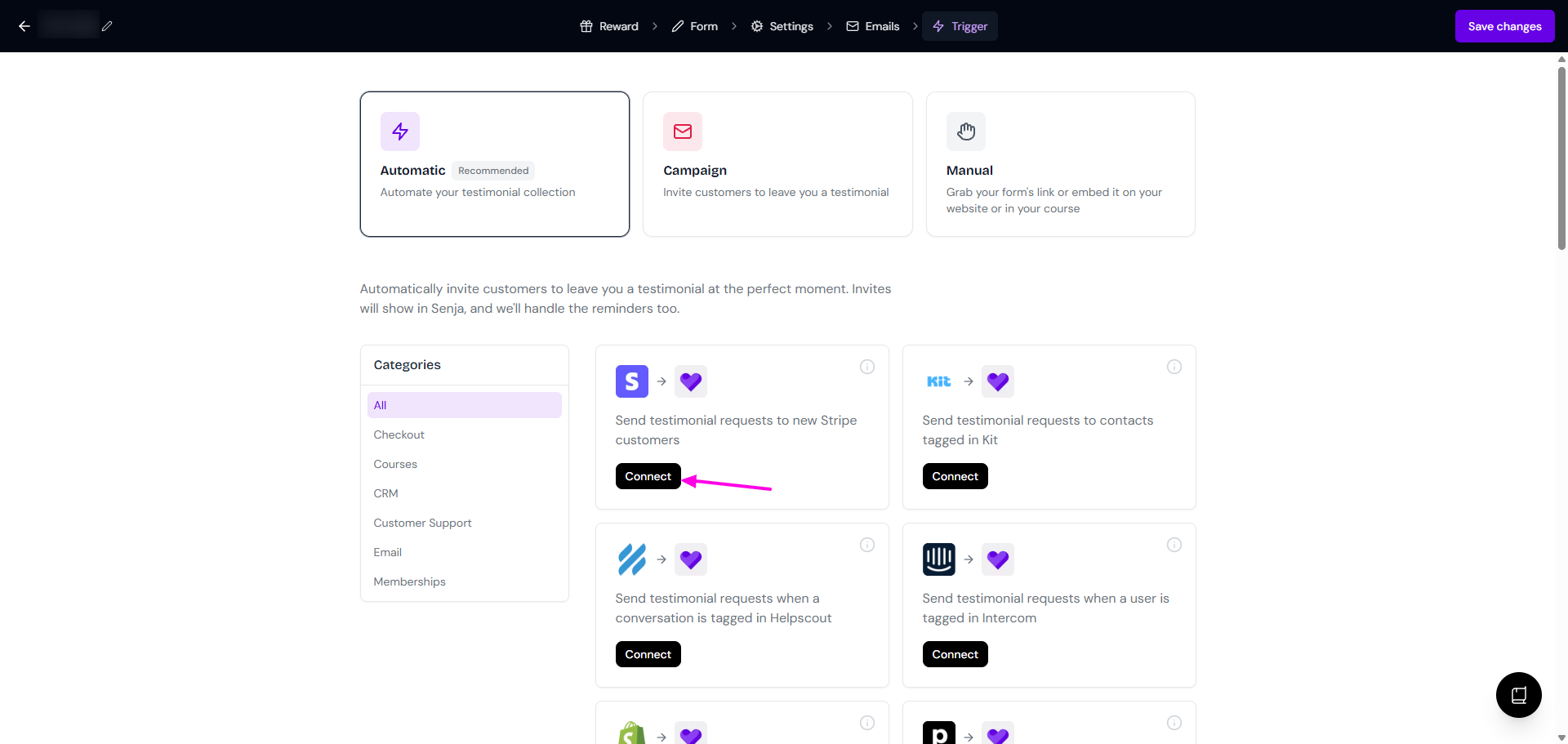 Senja auto-collect currently supports 24 services that can trigger a testimonial invite: