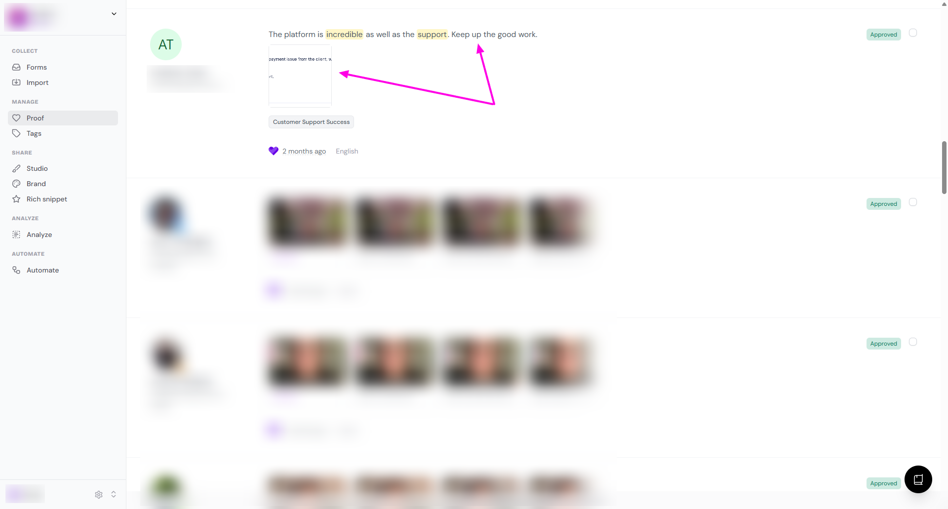 We've also made it possible to take a screenshot of a testimonial and import it directly from our Chrome extension.