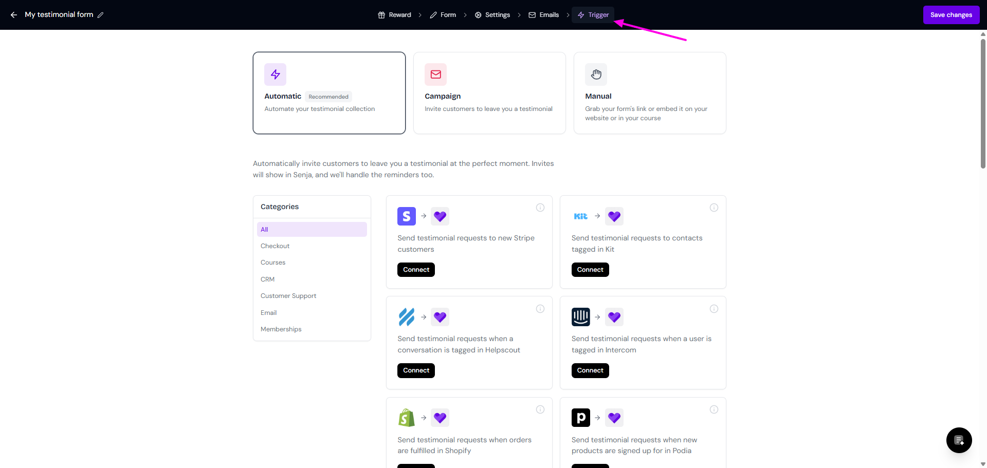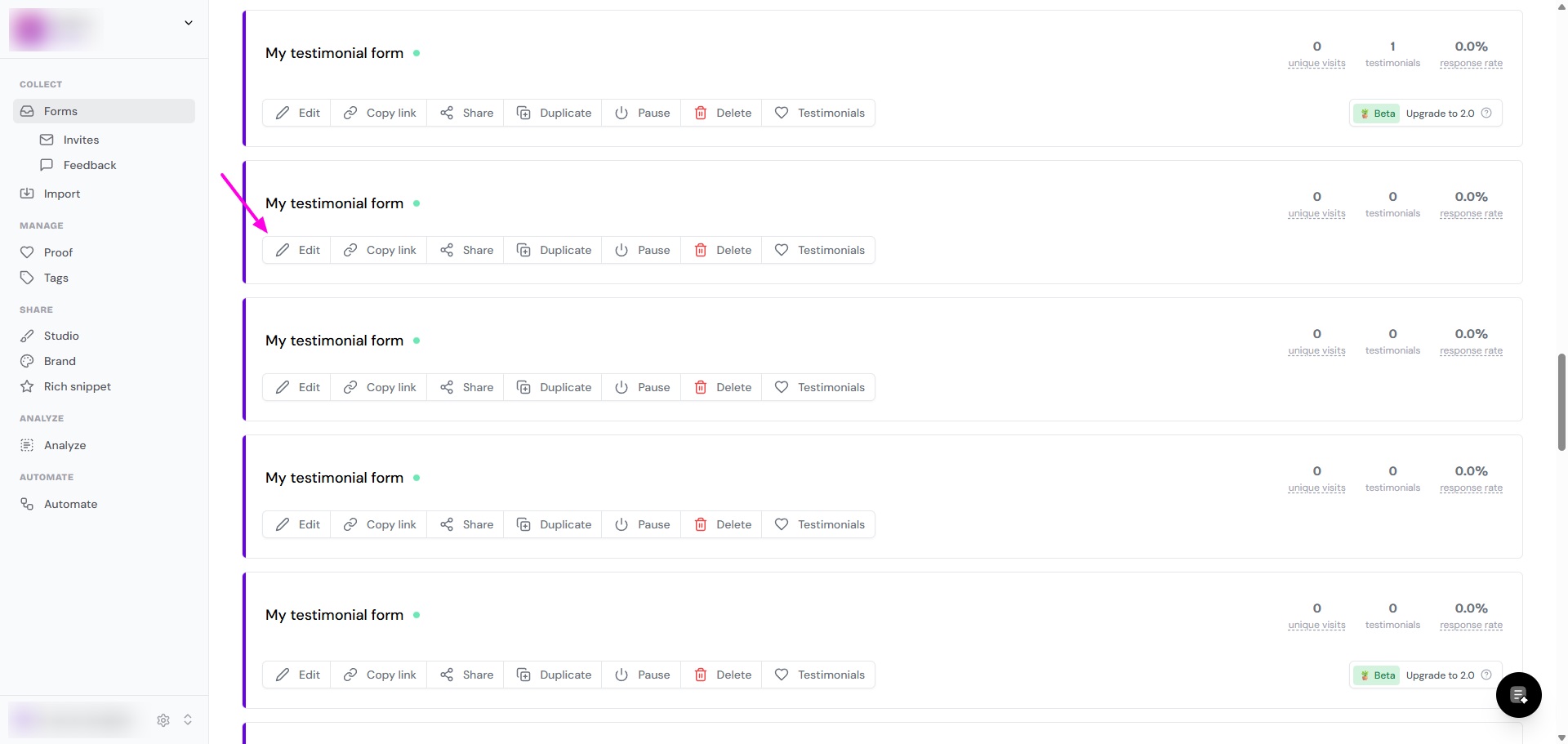 Go to your Forms page: https://app.senja.io/forms