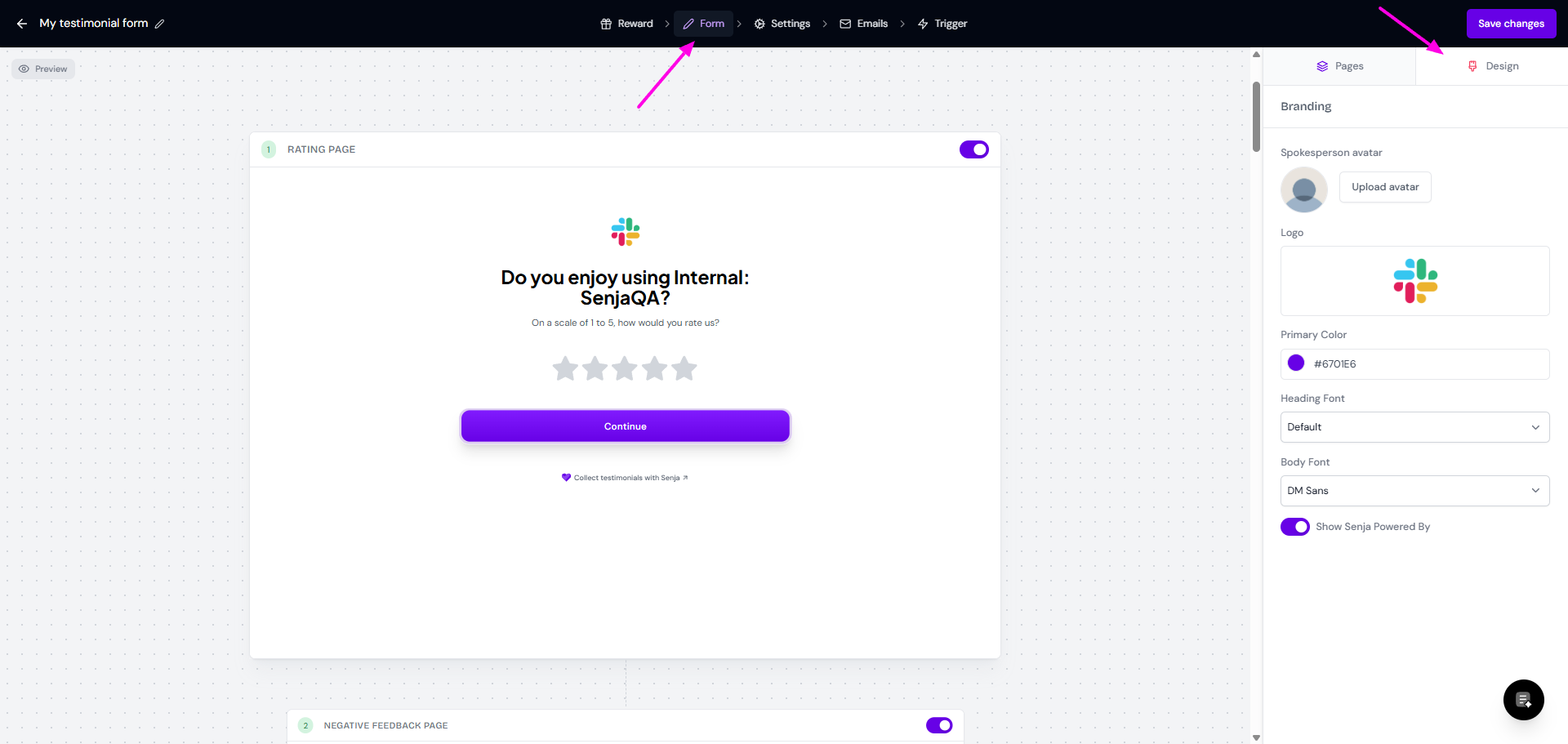 If you want to change your design (logo, color, font), stay in the Form tab and click the Design subtab