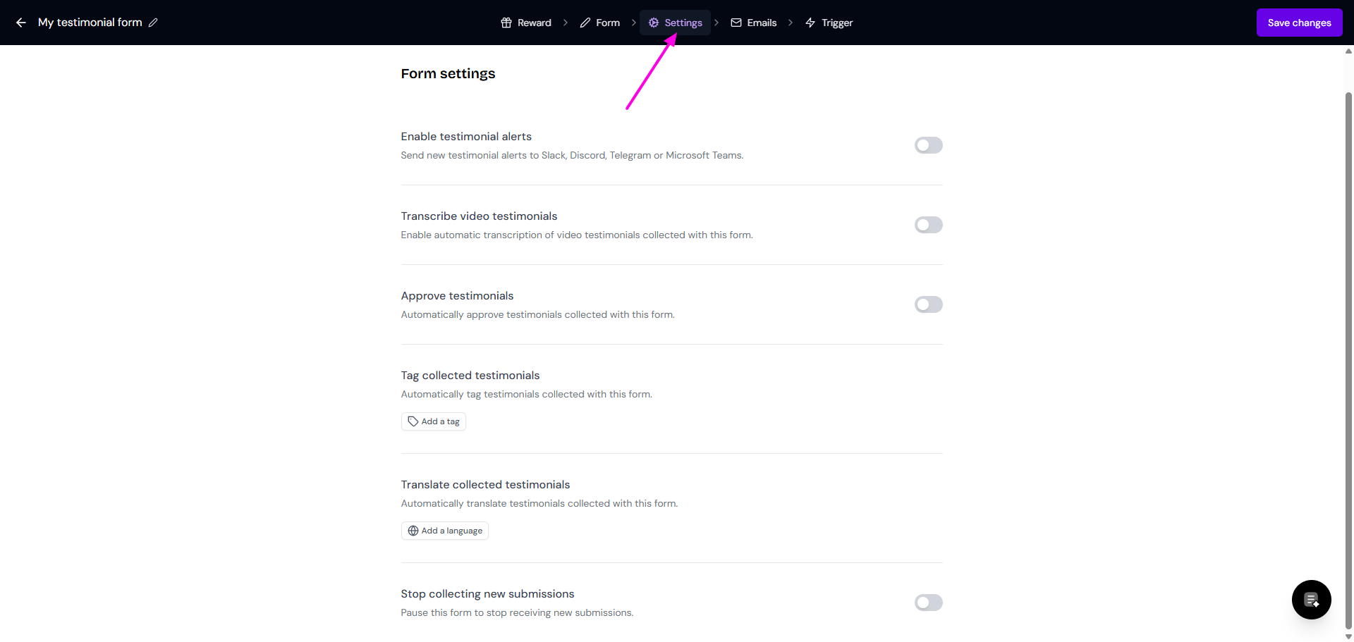 Auto-tag the testimonials submitted via this form
