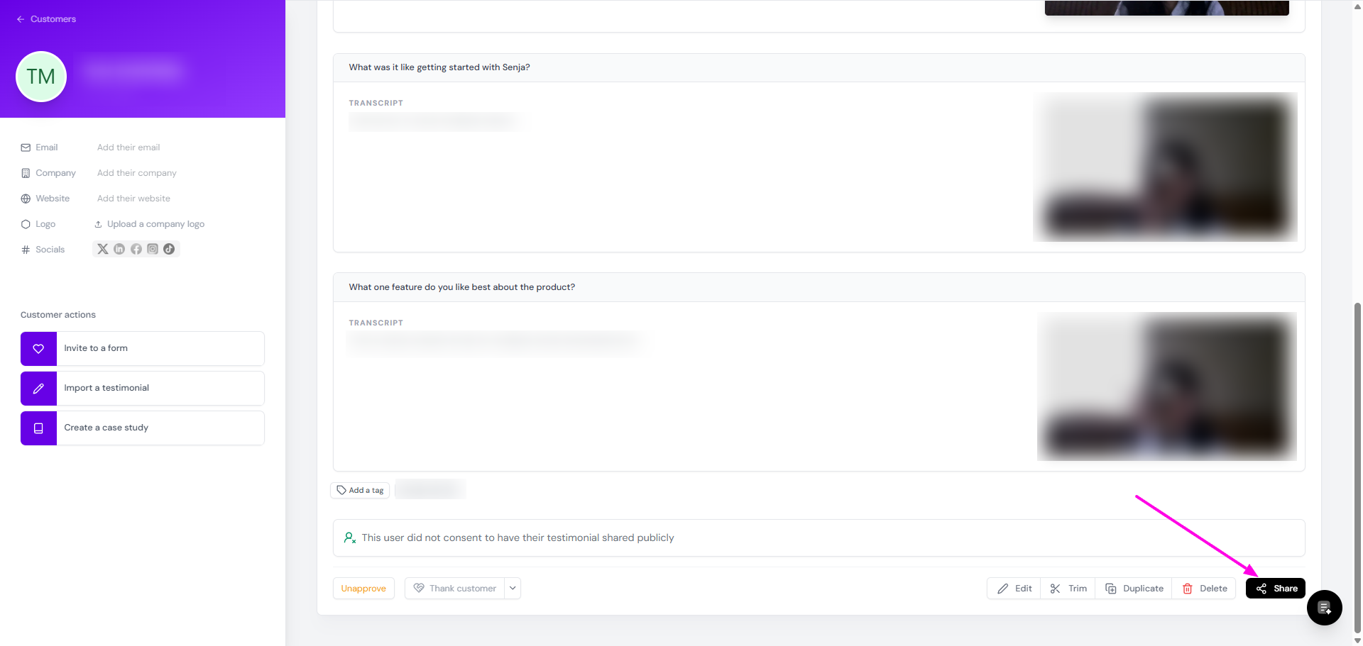 If you have multiple videos in 1 testimonial, all links will be in 1 cell, separated by comma