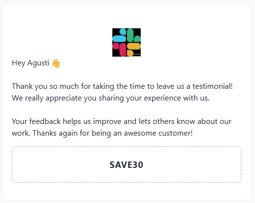 Automated email: If you've made the email field required, Senja sends the prize in a thank-you email