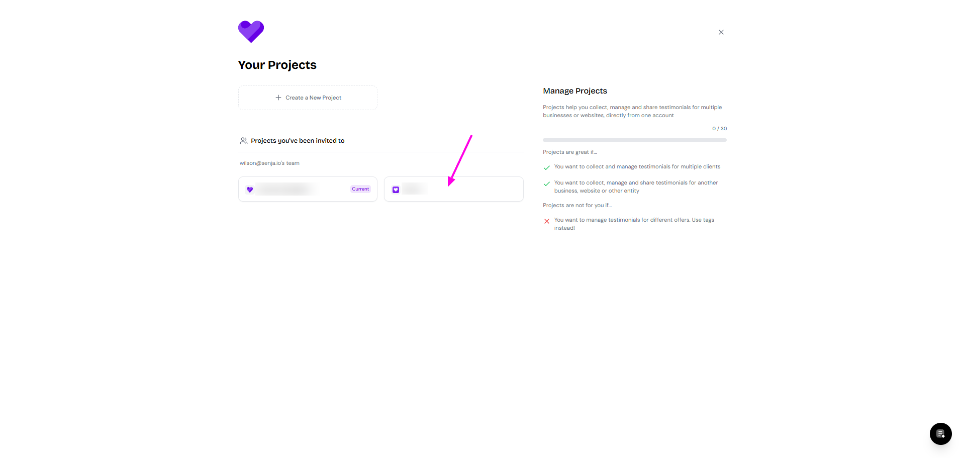 If you have multiple projects, you can switch between them using the project toggle in the menu.