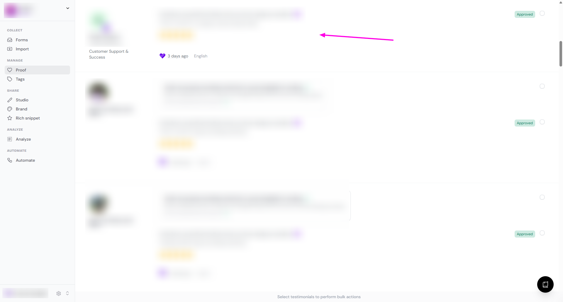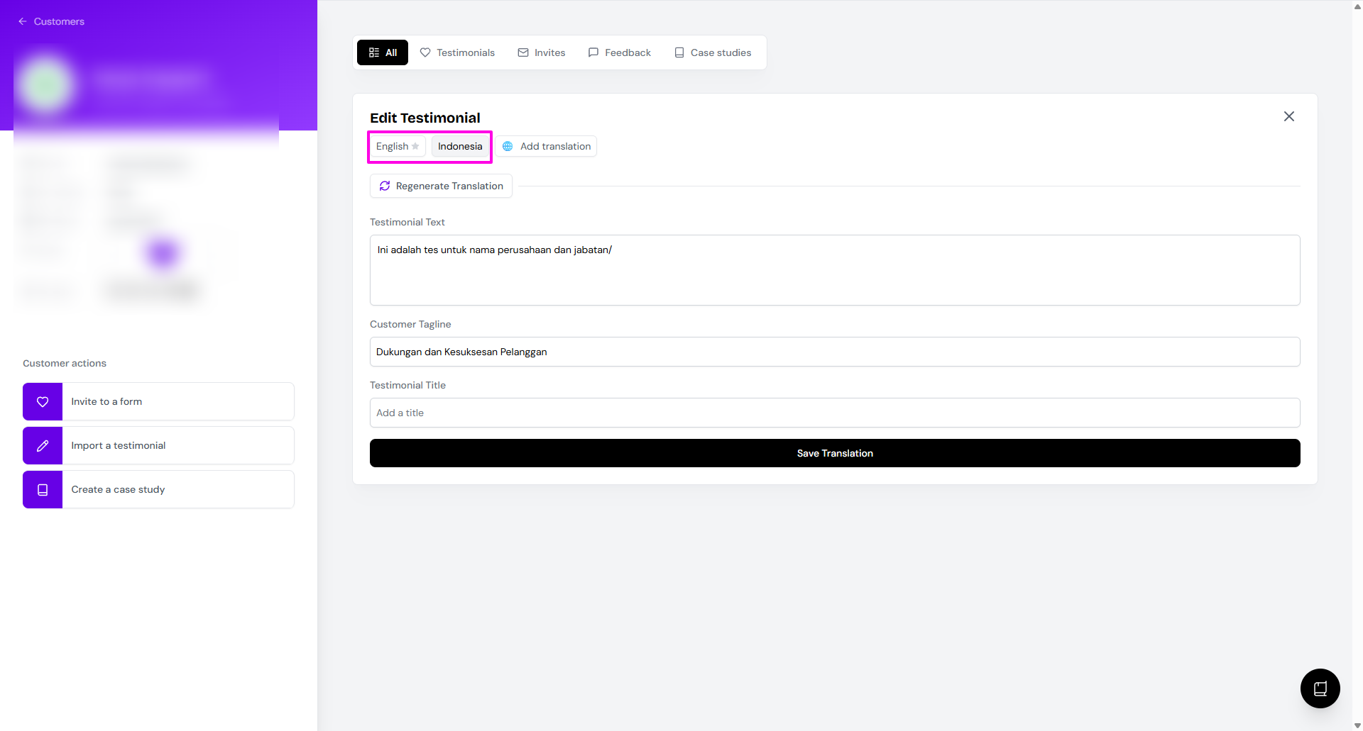 Use bulk translation to create new language versions of your testimonials so you can share the right version anywhere.