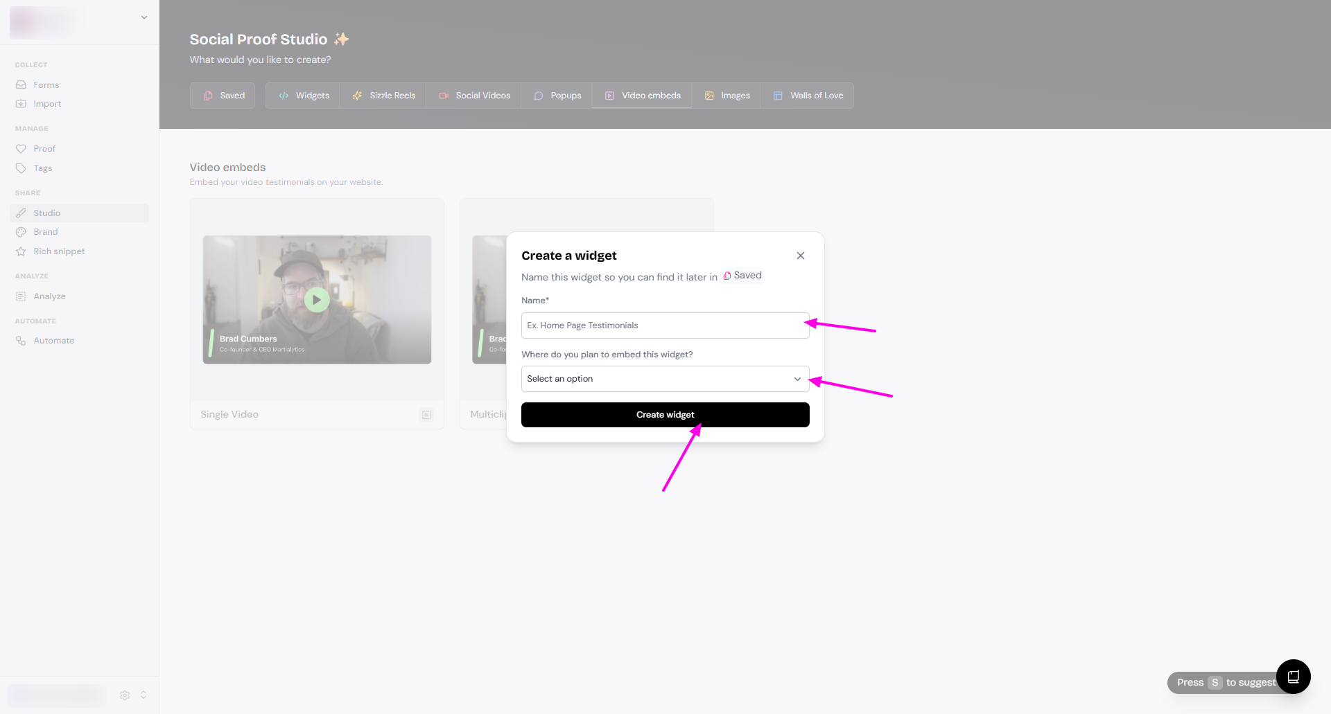 In Senja Studio, you can turn your video testimonials into video embeds.