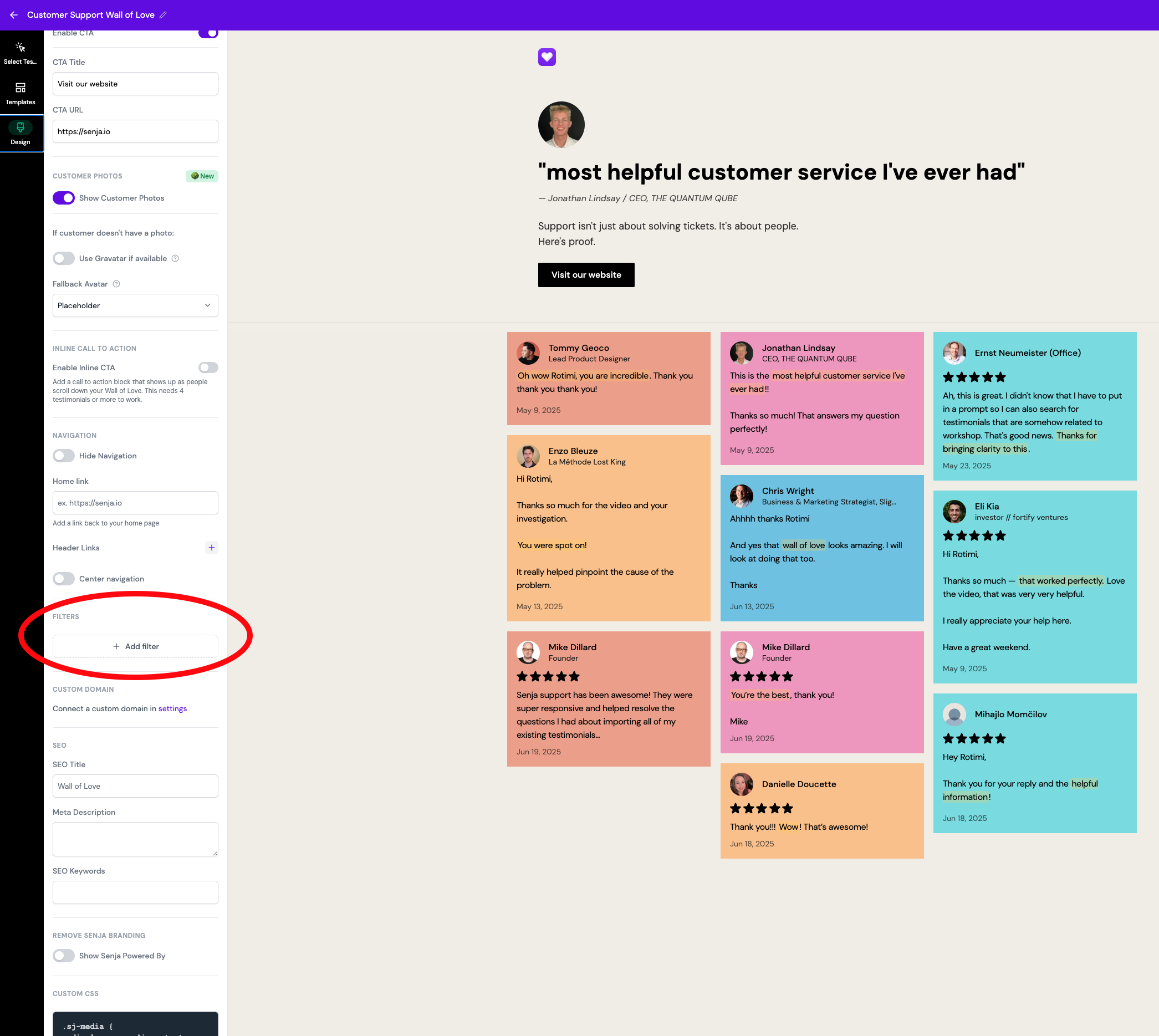 Embed your Wall of Love on your website with filters enabled