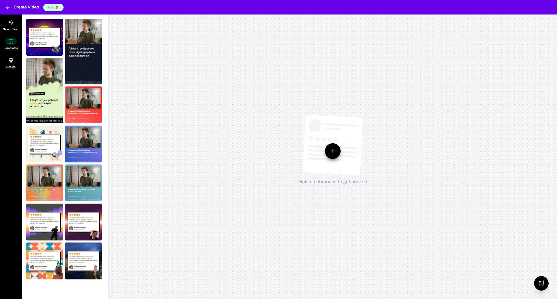 You'll need at least one video testimonial to create social videos.