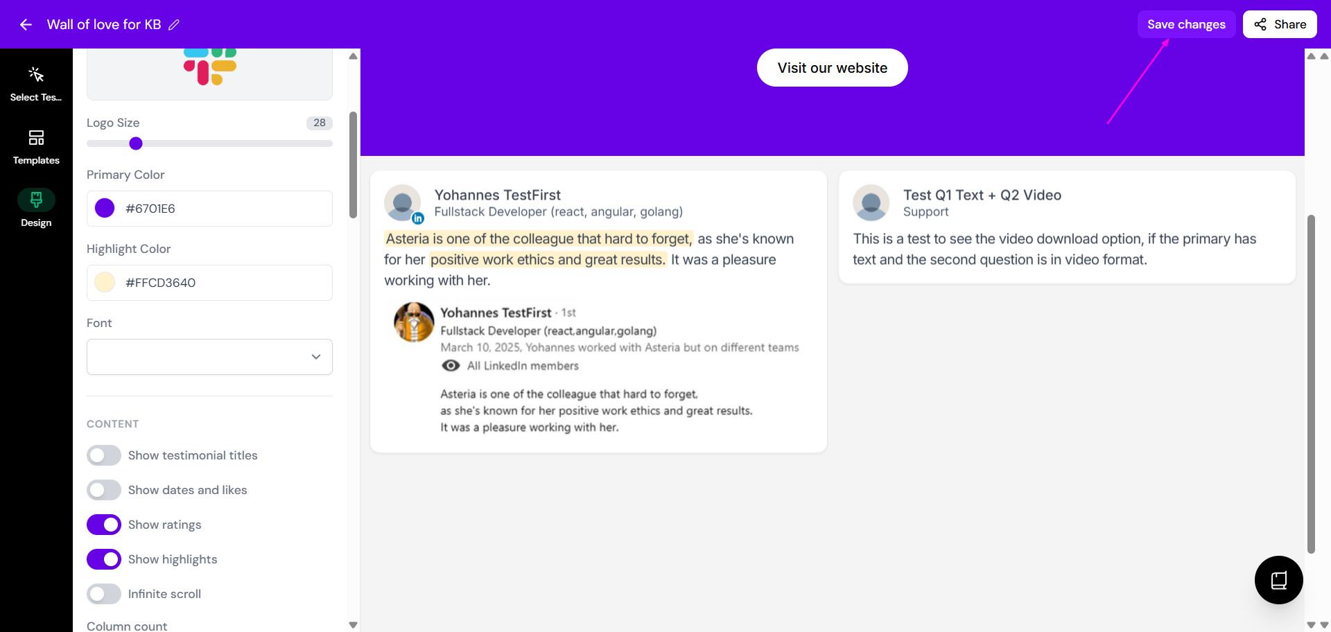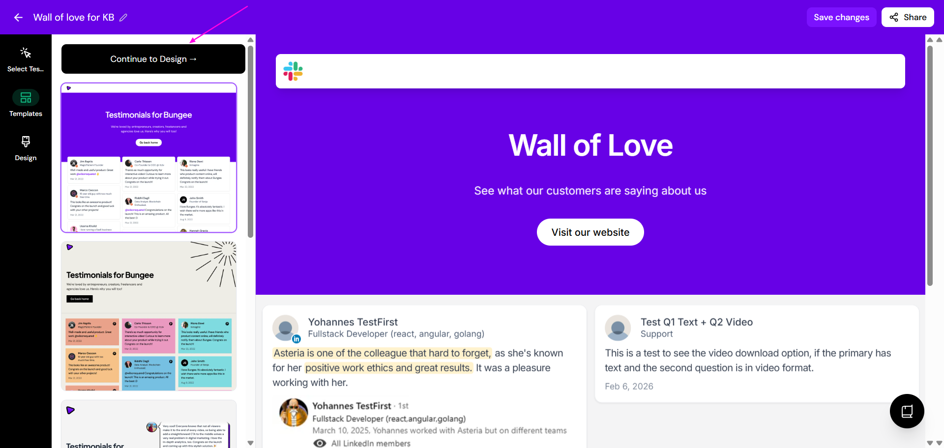 Click on the Wall of Love you want to edit or create a new one from the available templates