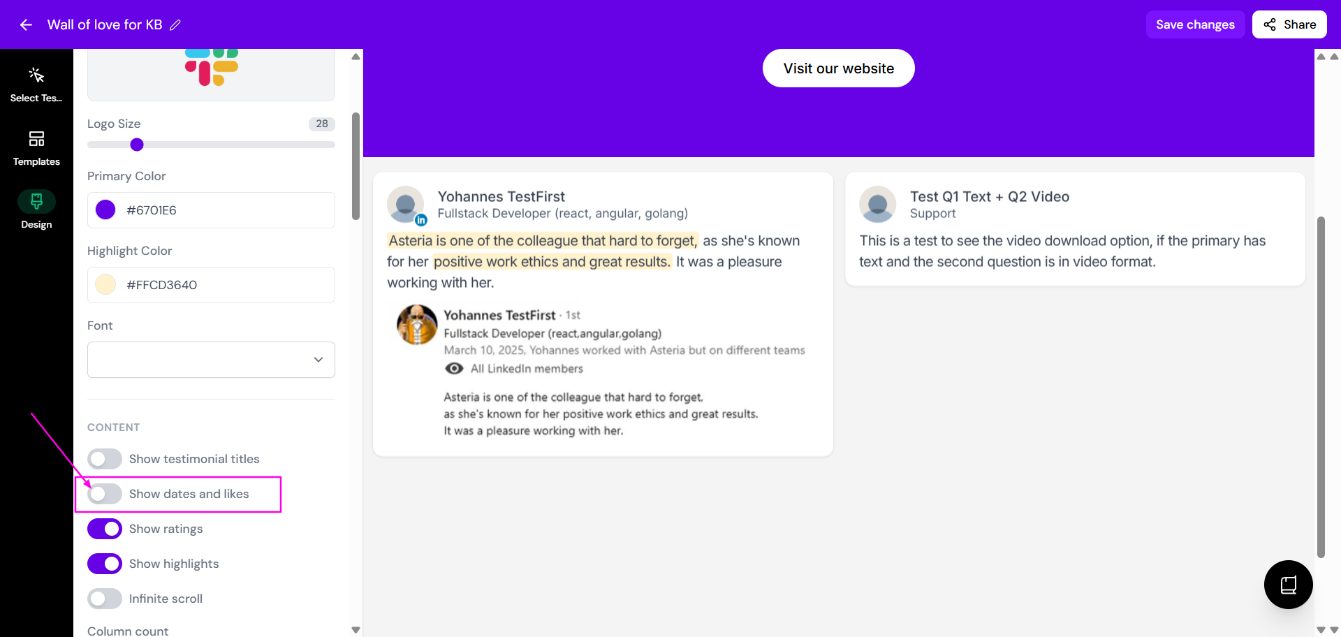 Your changes will be saved, and the dates will be hidden on your Wall of Love.