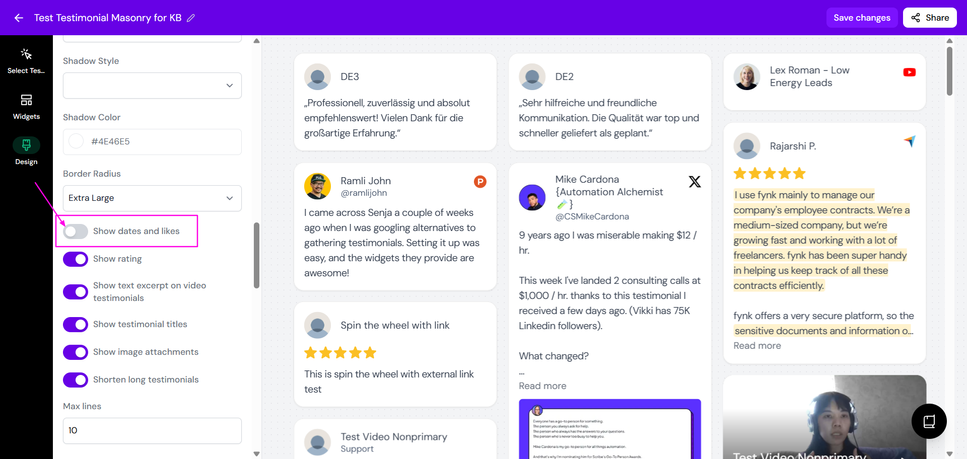 You can hide the dates on your widgets, including your Walls of Love, for a cleaner look. This is a per-display setting, so you'll need to configure it for each Wall of Love and Widget individually.