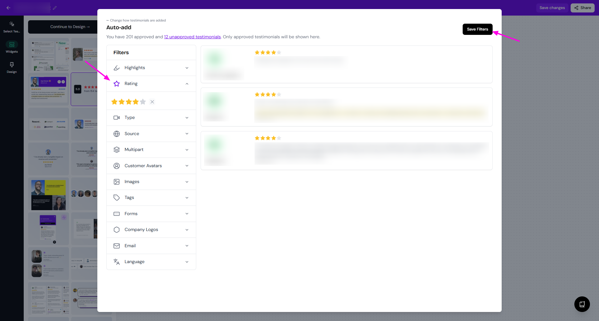 If you choose Auto-add, all testimonials with the chosen rating will be automatically updated (including the new ones coming after this setup)