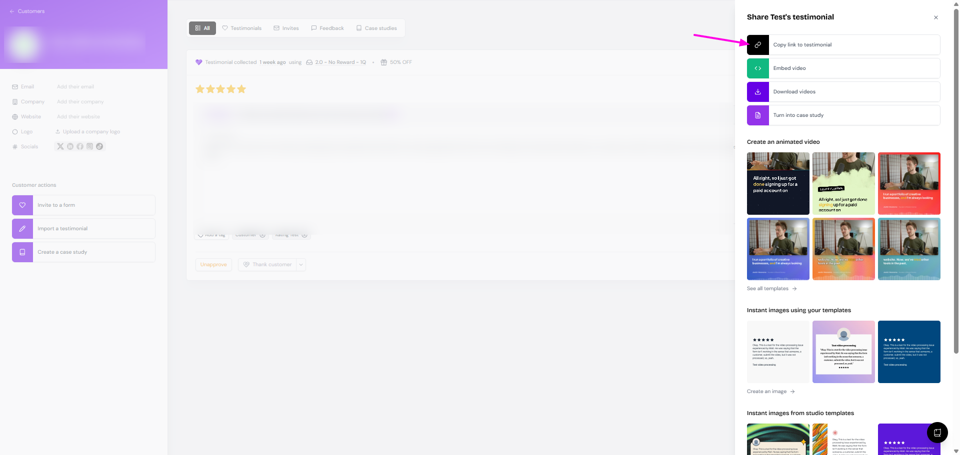 Go to Studio in your Senja dashboard: https://app.senja.io/studio