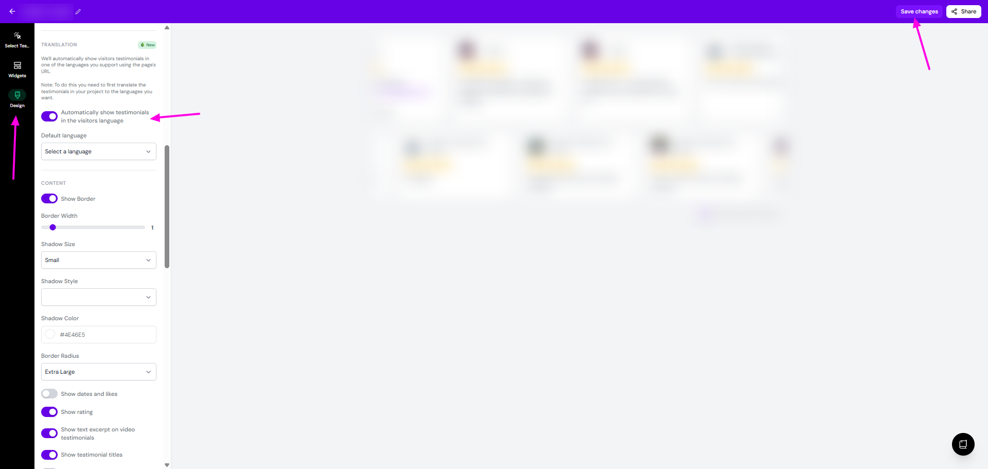 Toggle on Automatically show testimonials in the visitors language