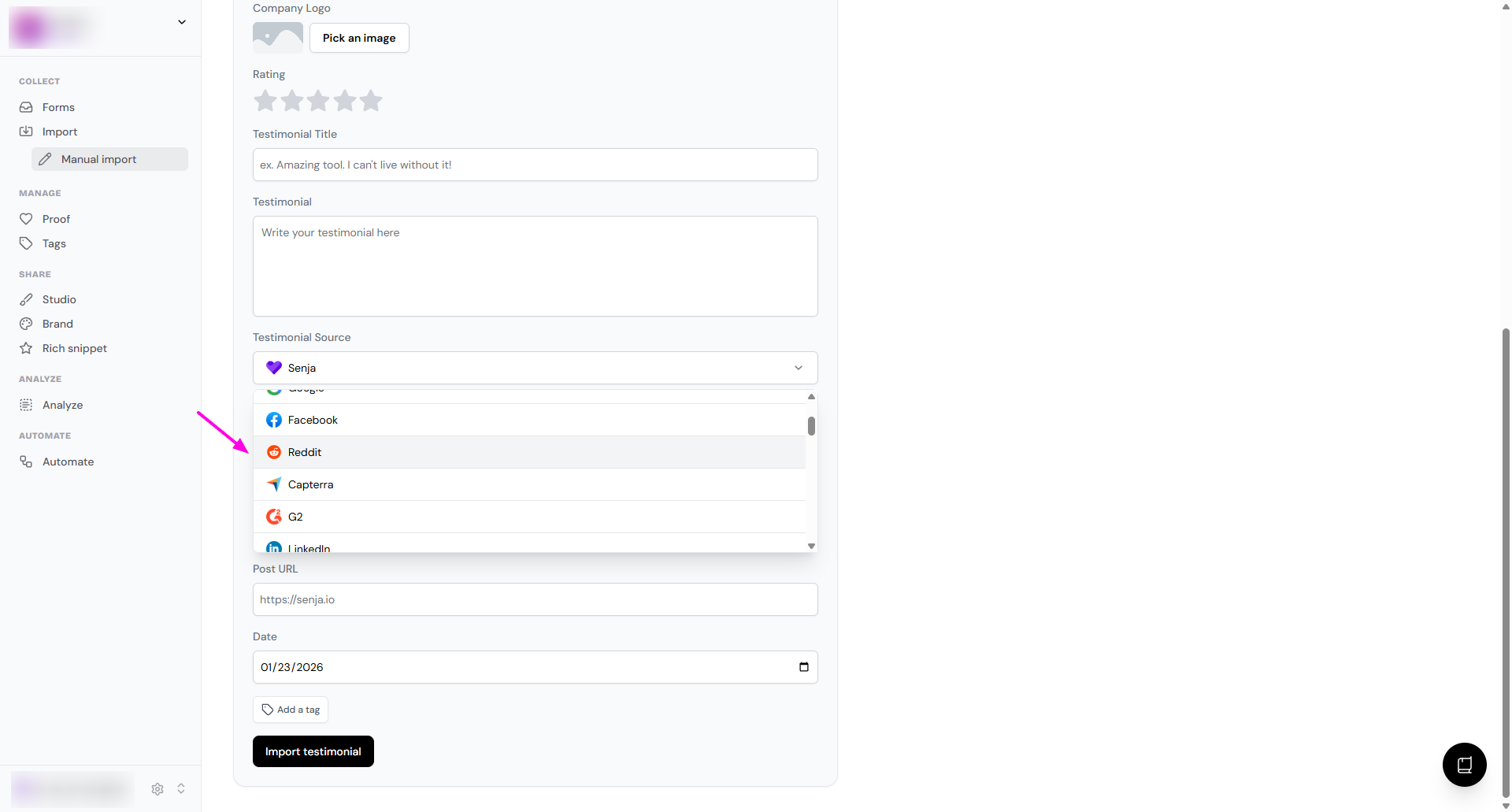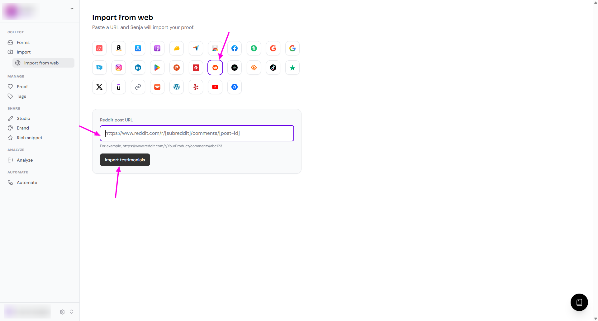 Before you begin: Have the public URL for the Reddit post or comment you want to import