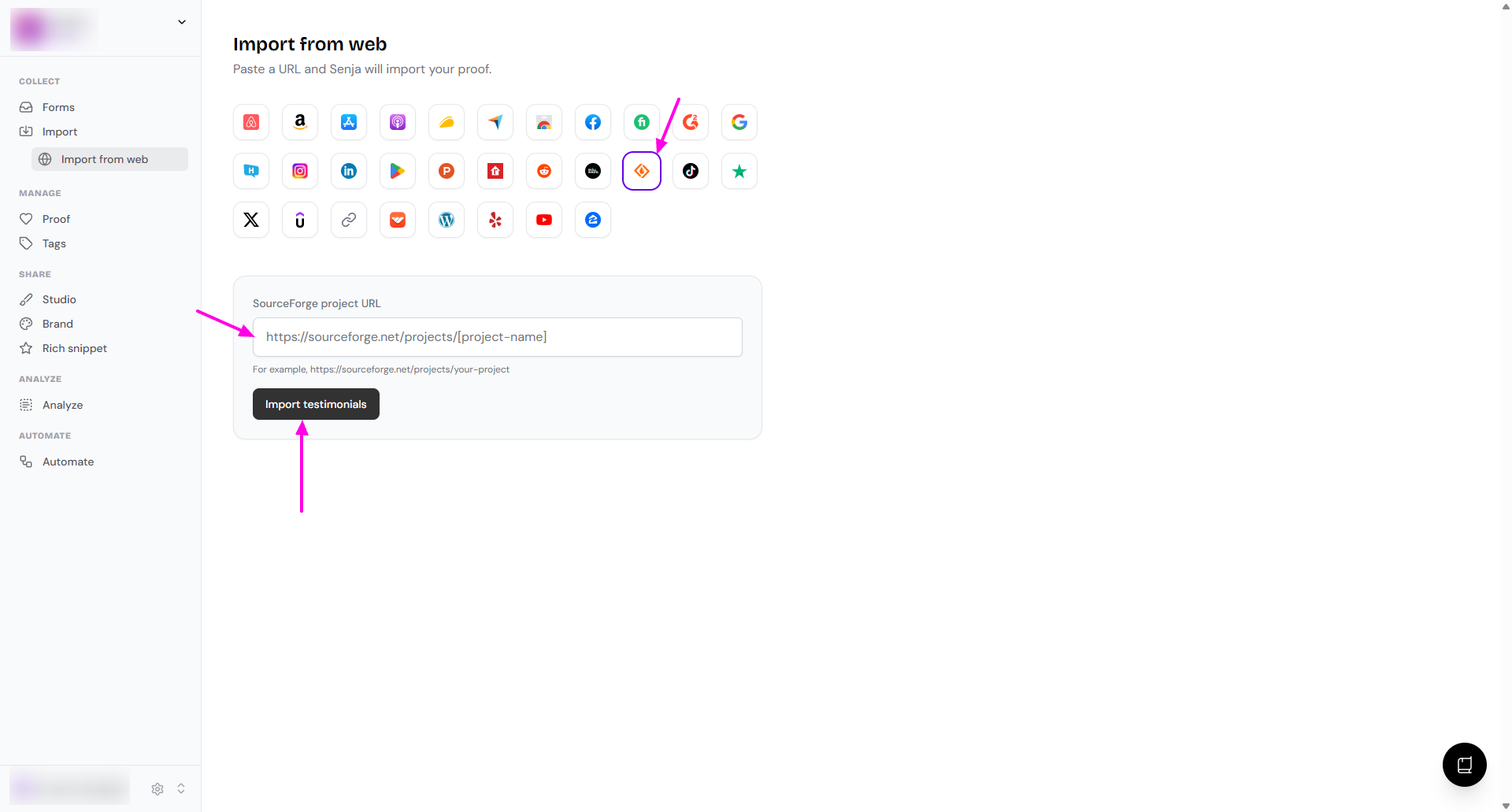 If you run into any issues importing your SourceForge testimonials, contact Senja Support and we'll help you get set up