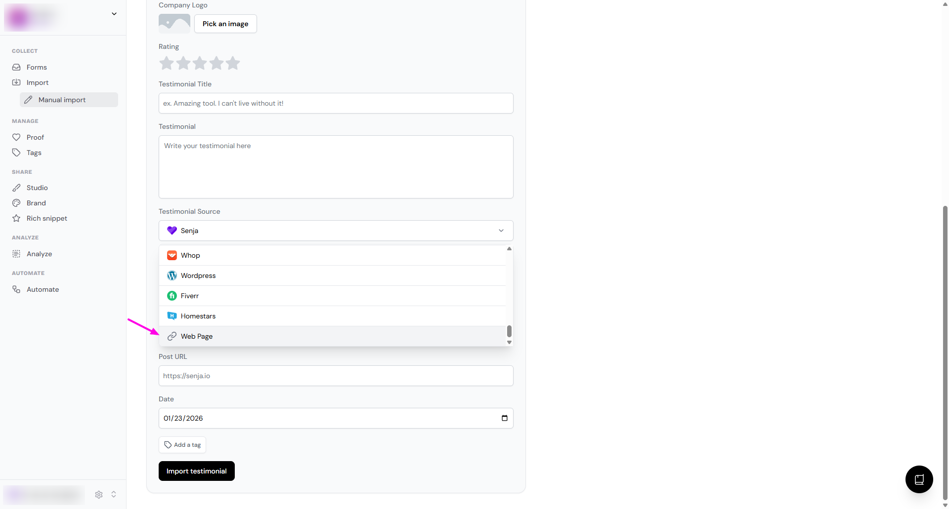 You can use Senja Chrome extension following this guide: Import testimonials with the Chrome Extension
