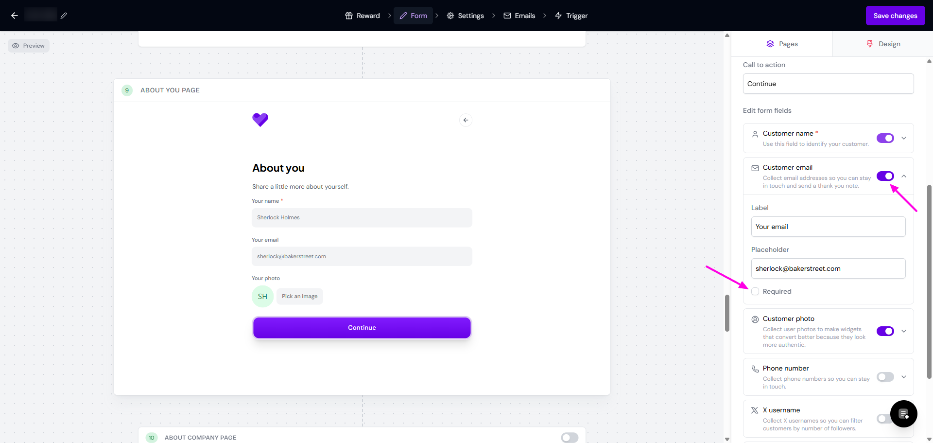You can also hide or delete some questions/sections, except for the Primary question and the About you page.