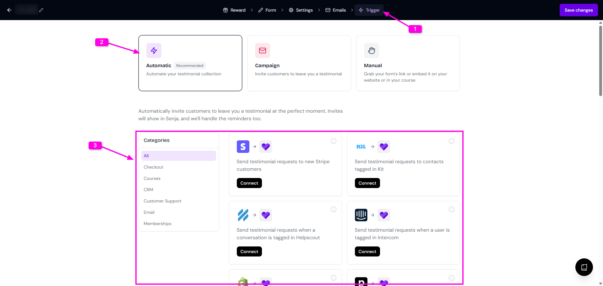 You can enable automation in testimonial collection using Forms, 1 form at a time.