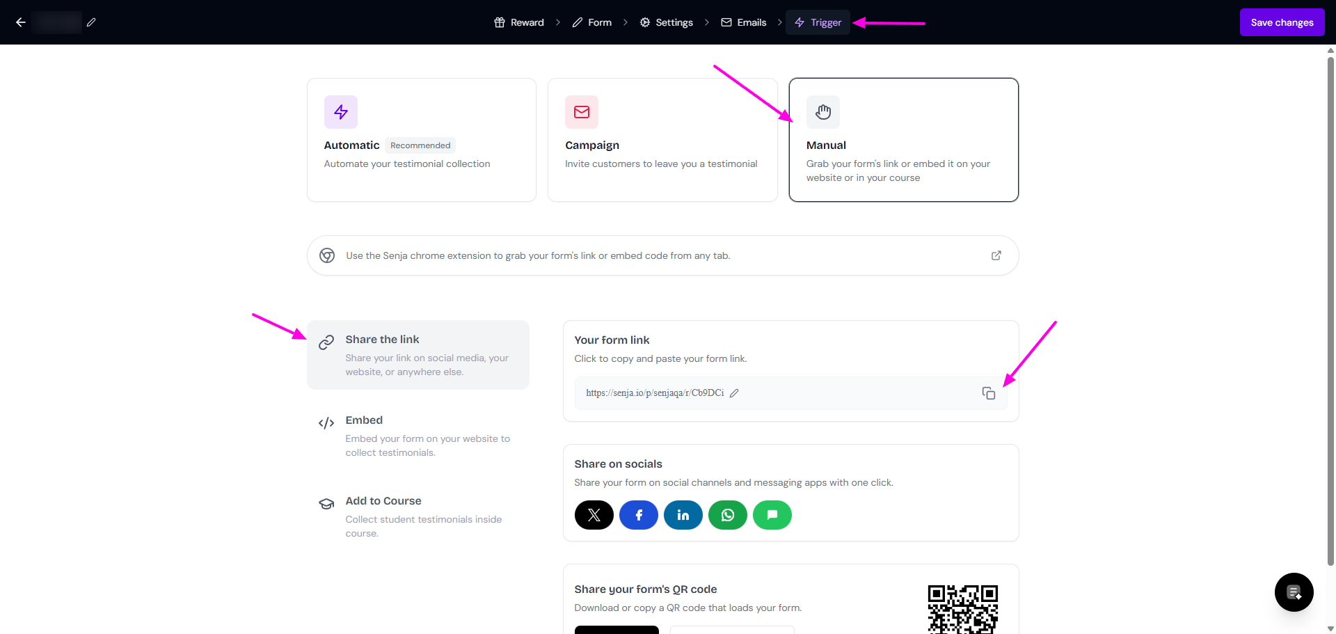 You can share the link to your Senja form to collect testimonials from your happy customers.