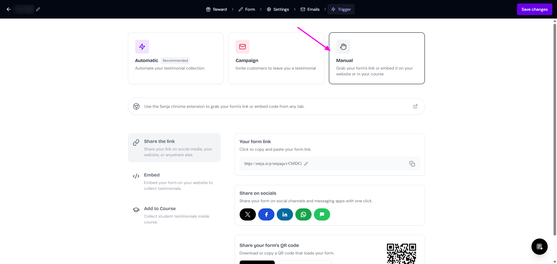 Senja offers multiple ways of sharing your form: