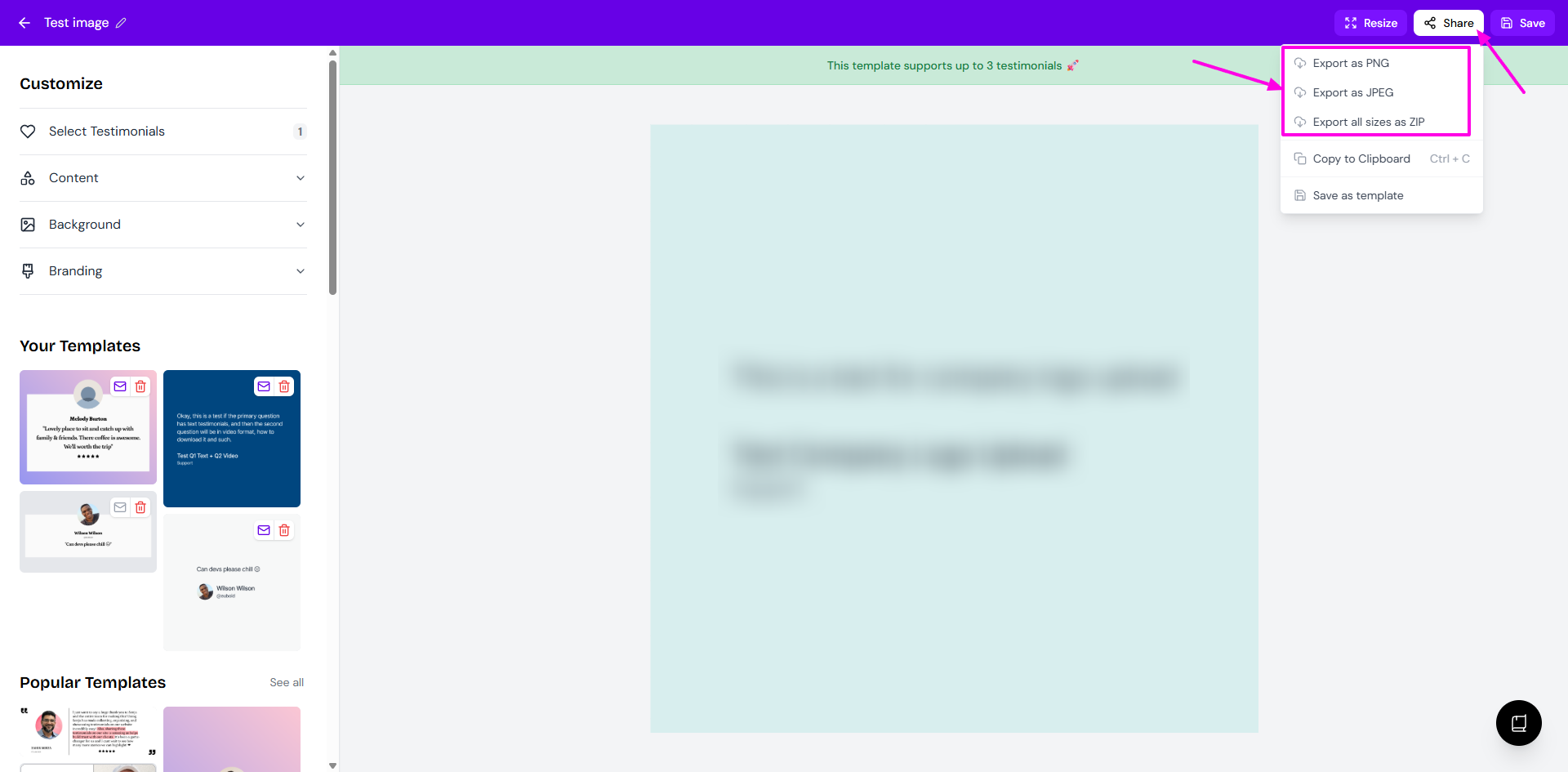 Create testimonial image or template following this guide: How to create image template