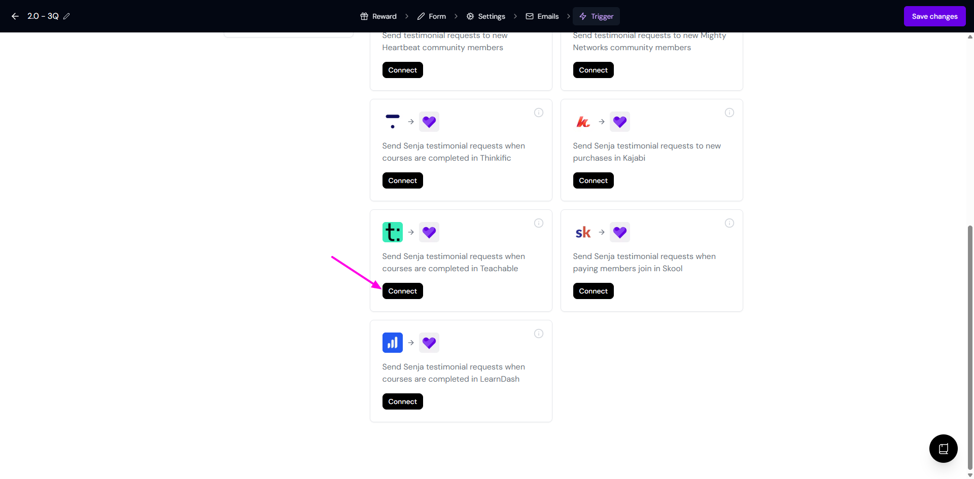 Find Teachable and click Connect
