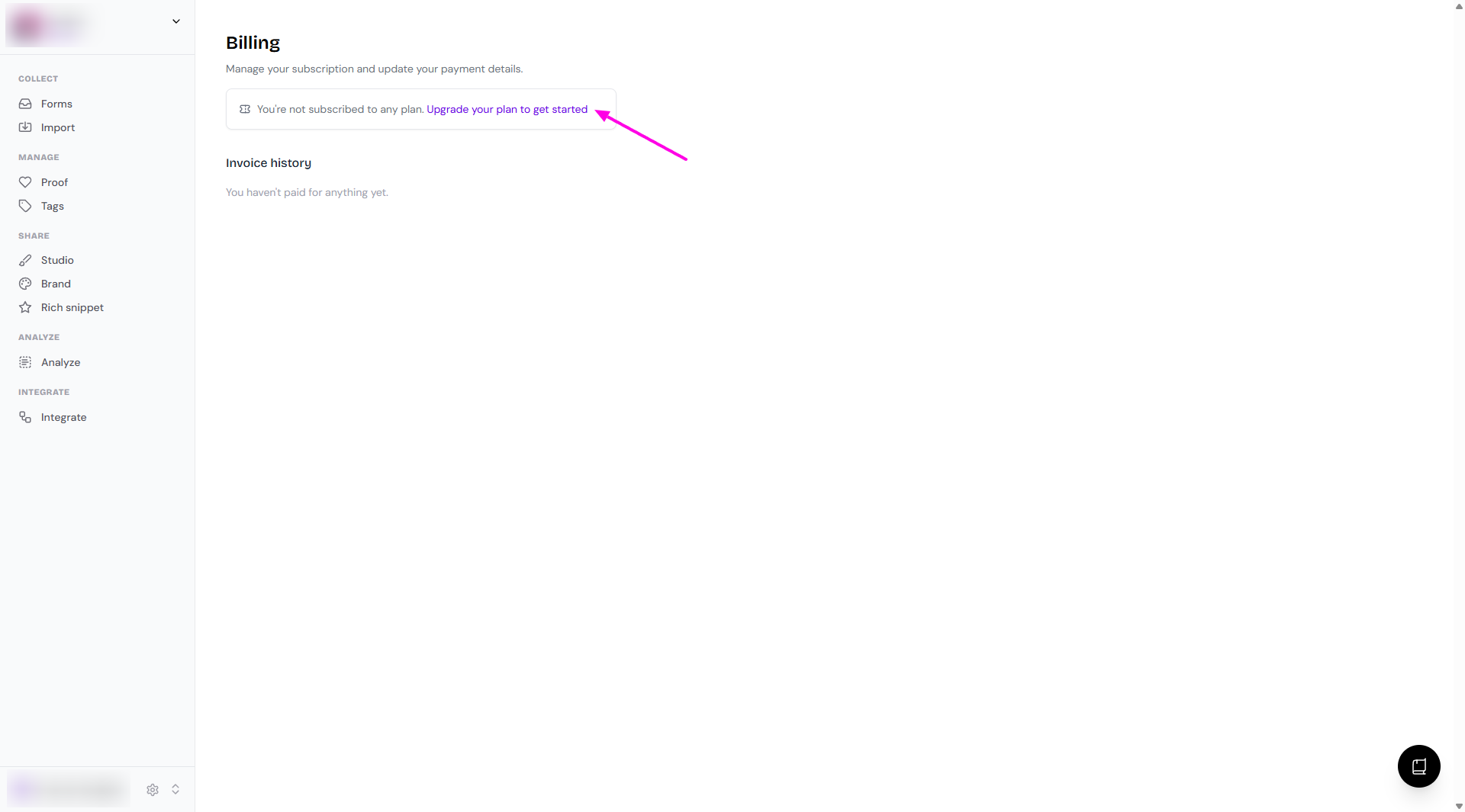 When upgrading to a paid Senja plan, you can add your company name and billing address directly on the checkout page. This information will appear on your invoices.