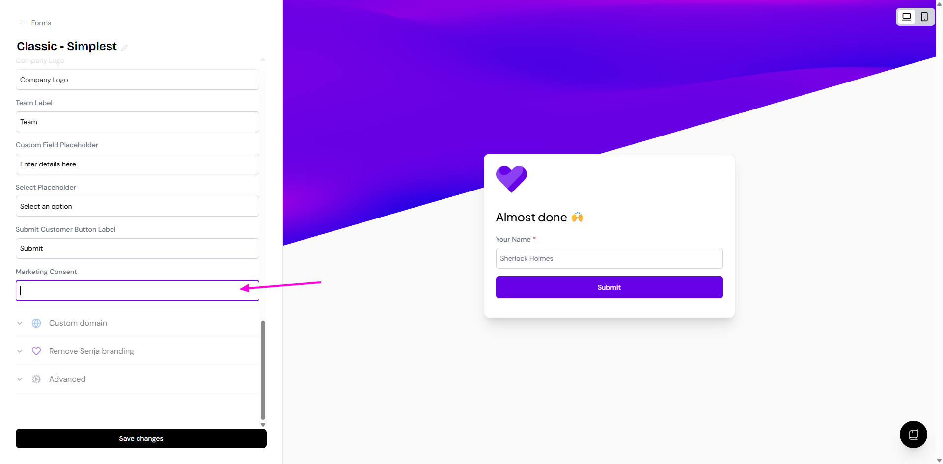 It's important that your customers give consent for you to use their testimonials in your marketing and sales efforts. By default, we have a consent message on all forms.