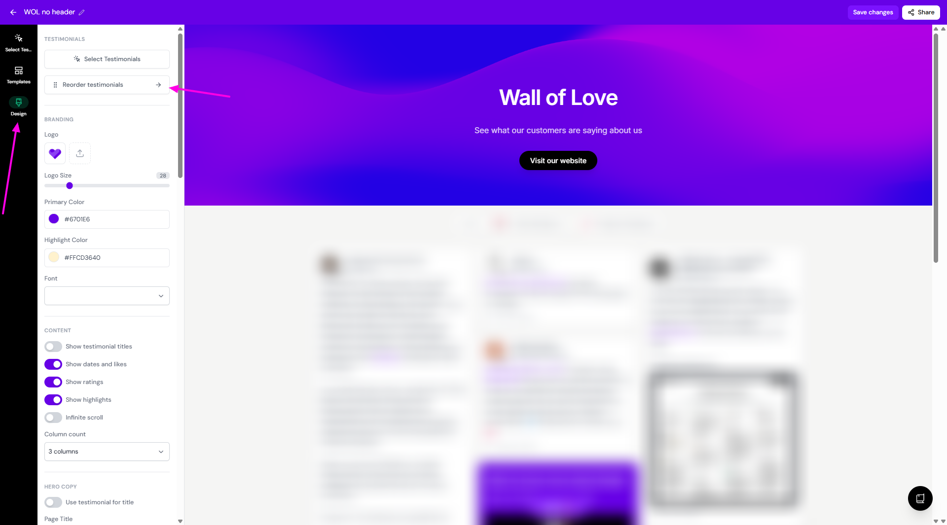 You can change the order testimonials appear on your Wall of Love to highlight the ones that matter most.