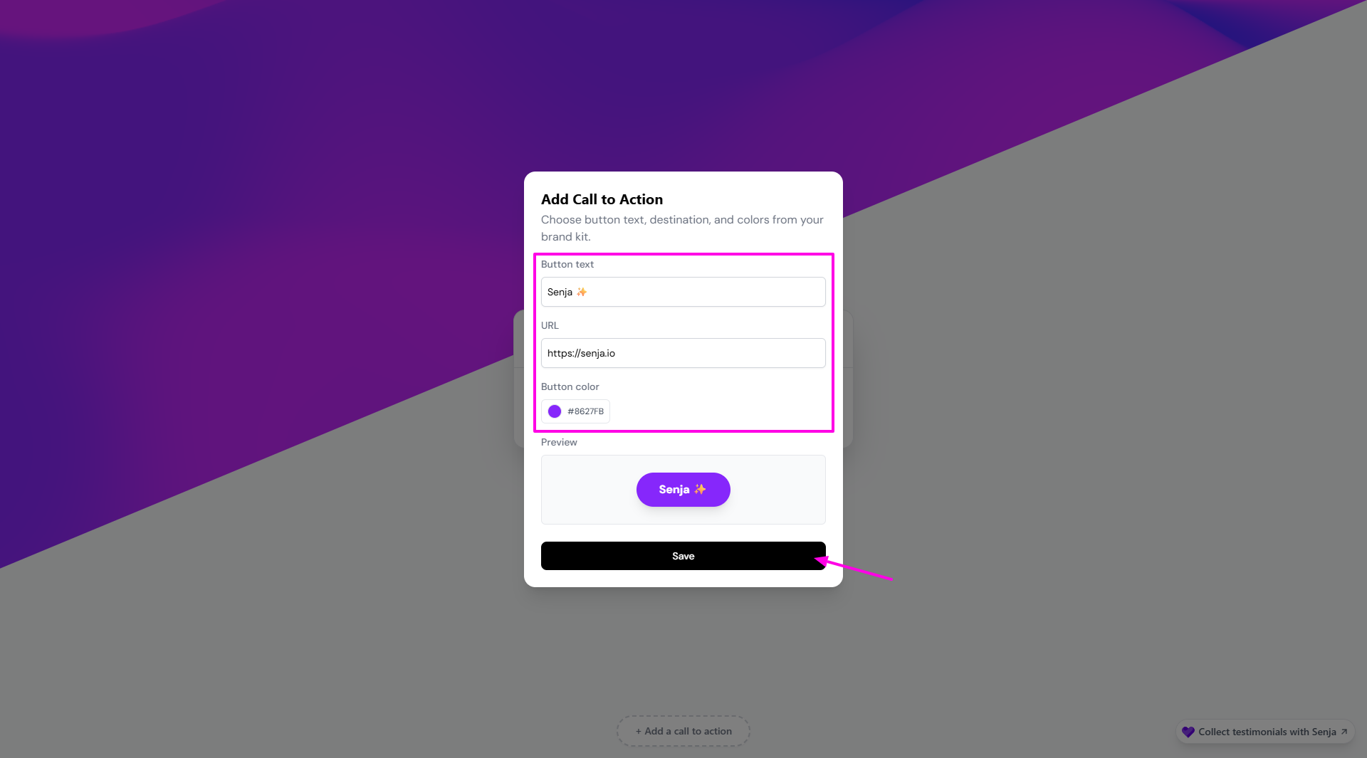 Paste the link in a new tab for previewing it and setting your CTA