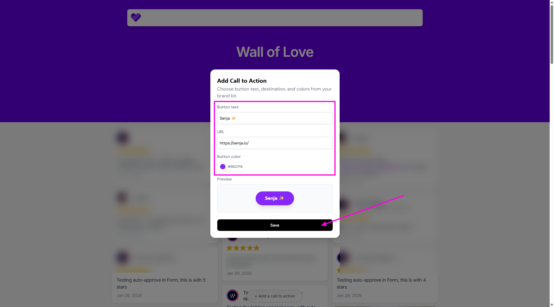 Go to your Proof page: https://app.senja.io/
