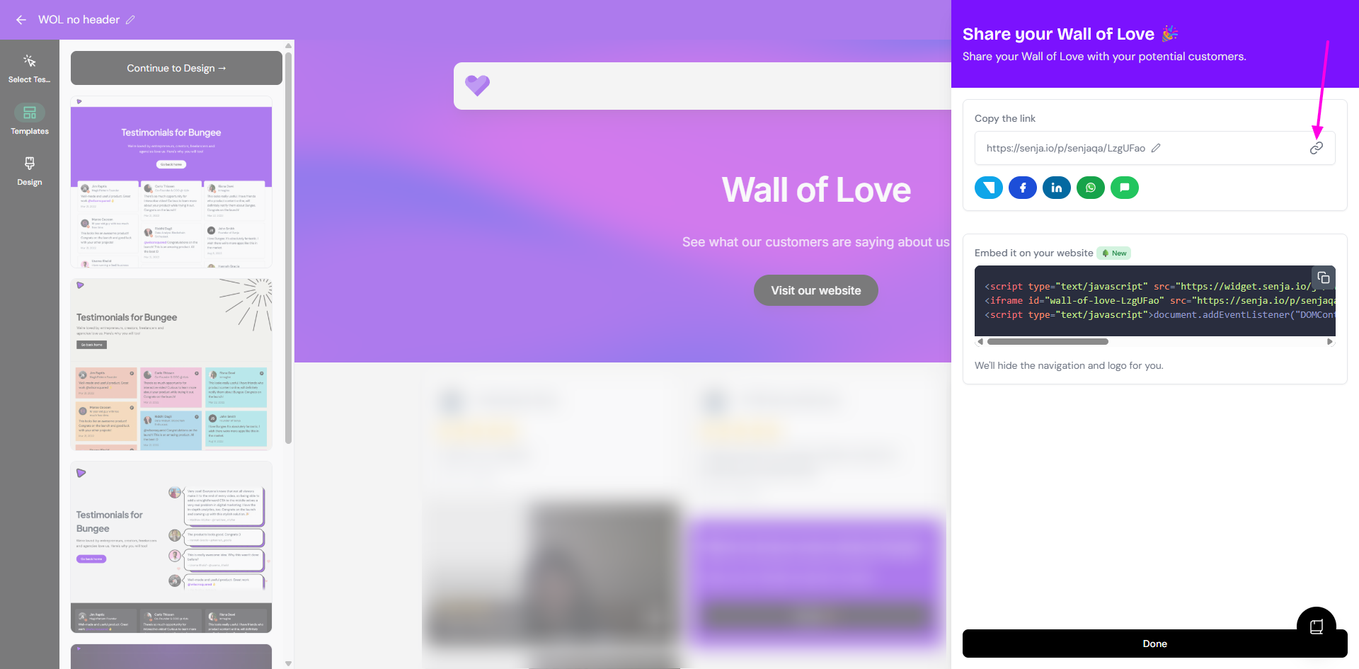 Embed your Wall of Love on your website