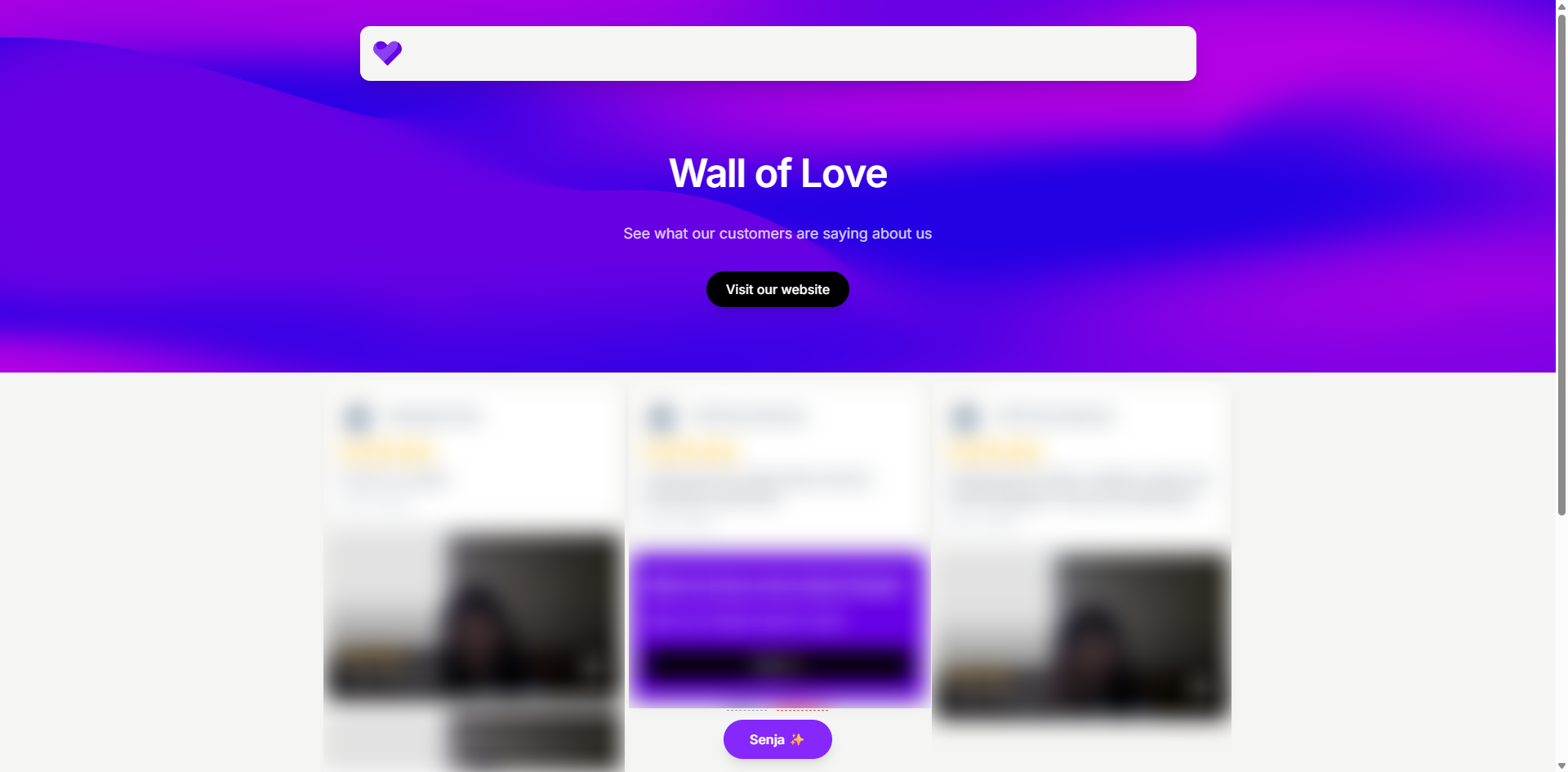 The inline CTA appears as a block between testimonials while visitors scroll through your Wall of Love.
