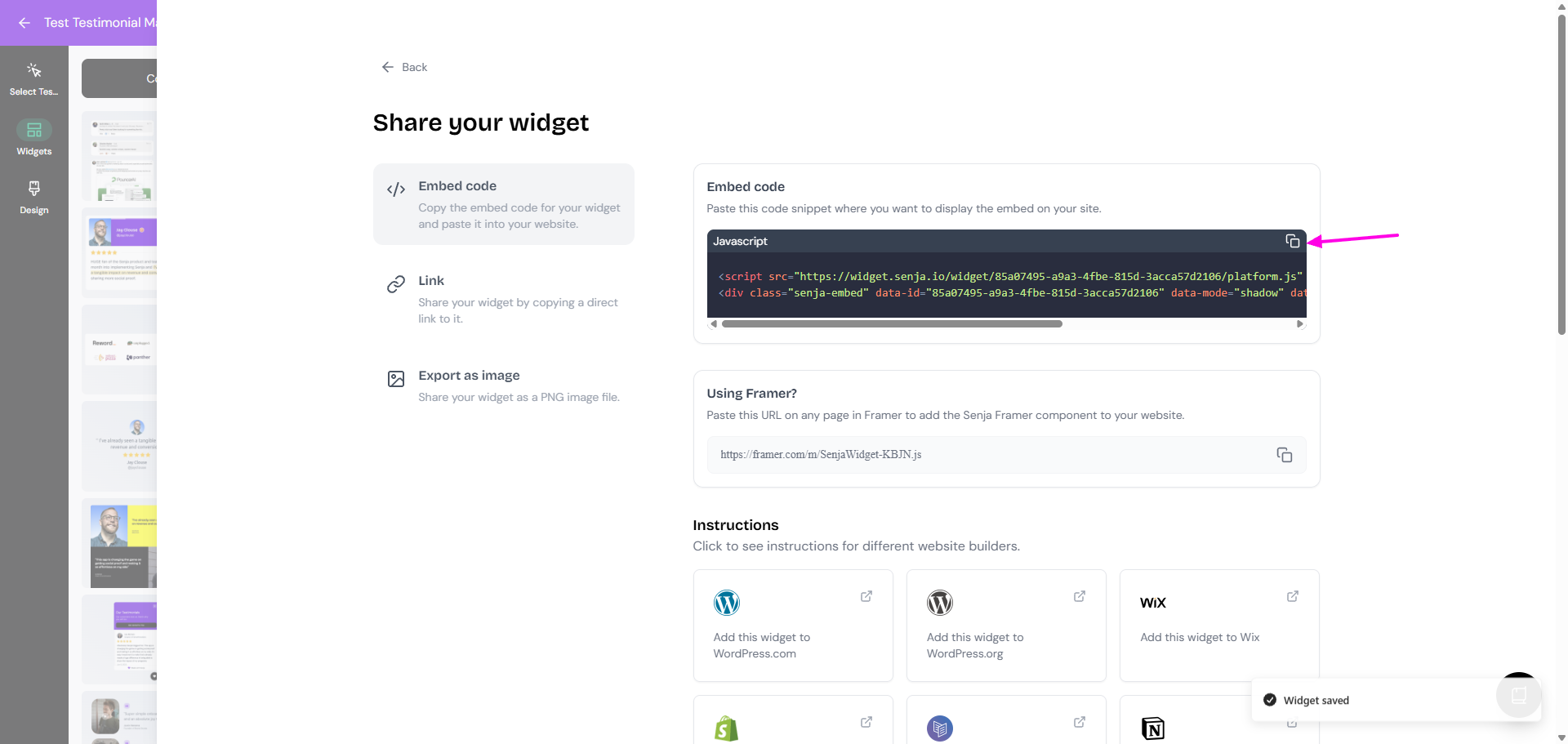 On your widget page, click Share