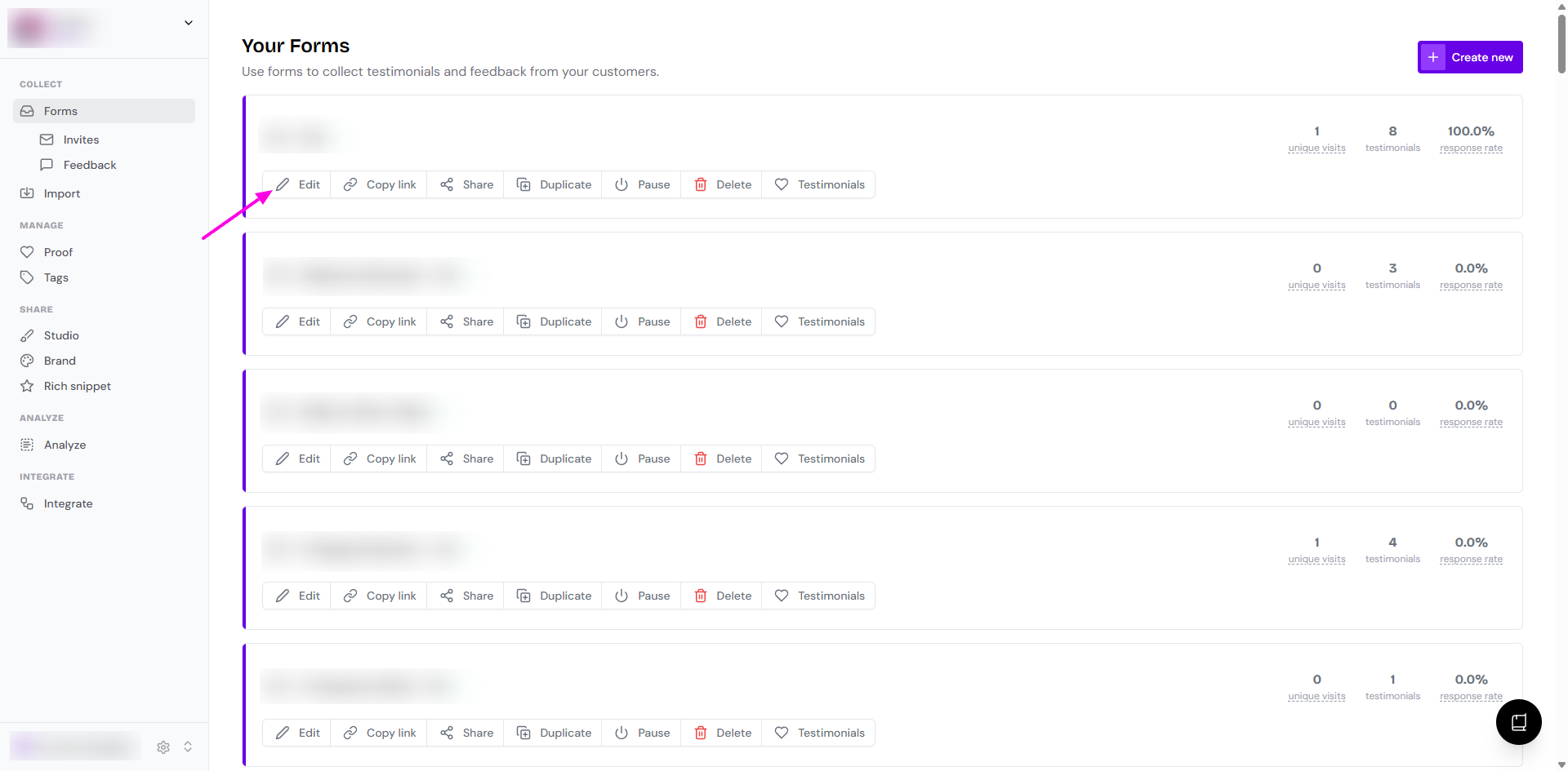 Go to your Forms page: https://app.senja.io/forms
