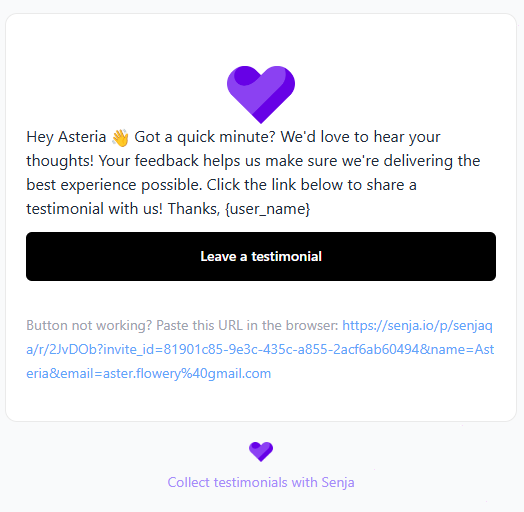 Personalize the invitation emails you send to customers when requesting testimonials. Forms 2.0 lets you save custom email templates, while Classic Forms let you customize emails each time you send invites.