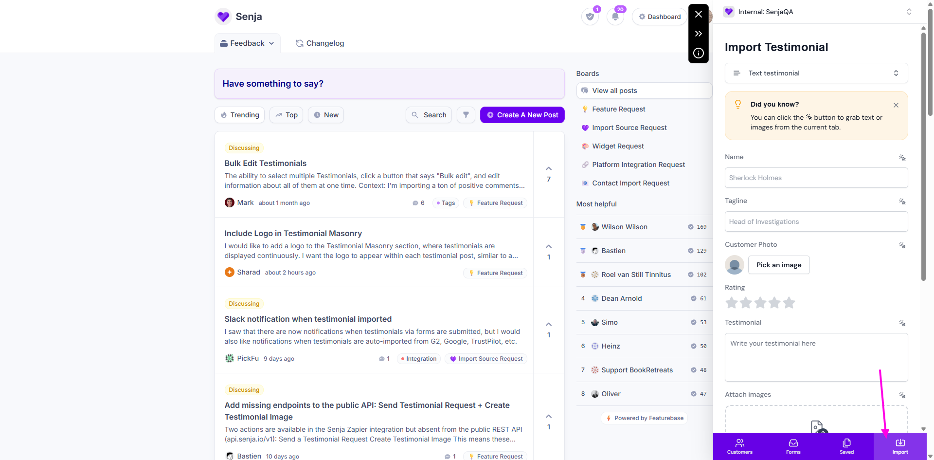 • Click the Import tab on Senja extension popup (bottom right)
