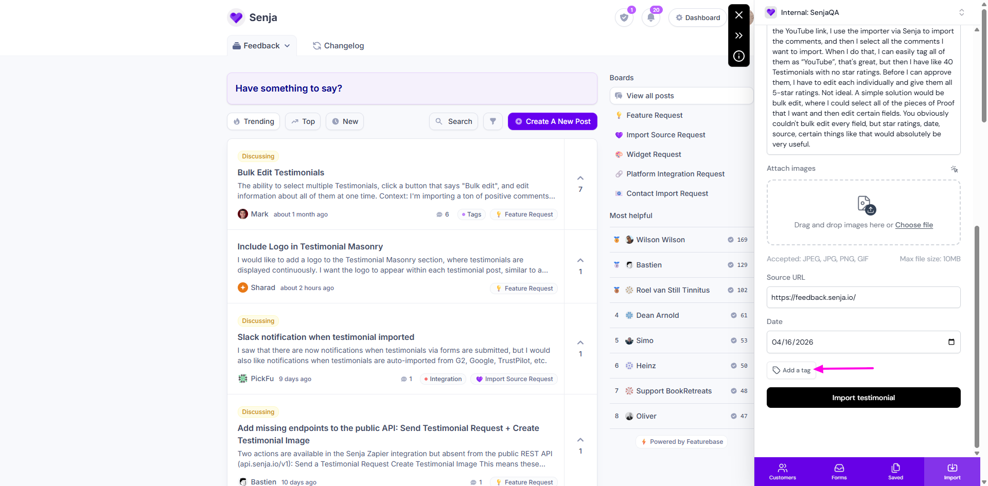 You did it! You imported your first testimonial using the Senja Chrome extension 🥳