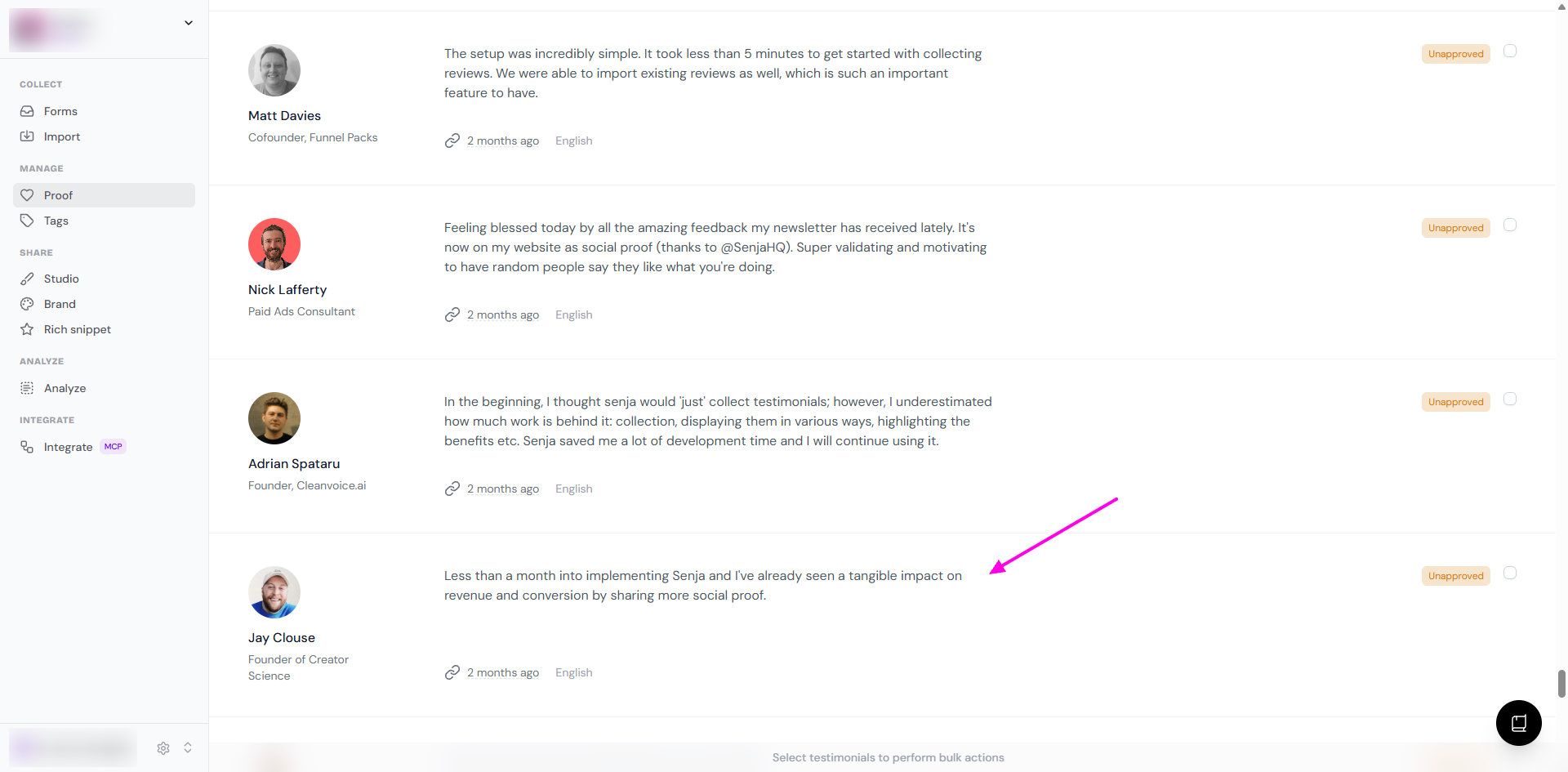 Go to your Proof page: https://app.senja.io/