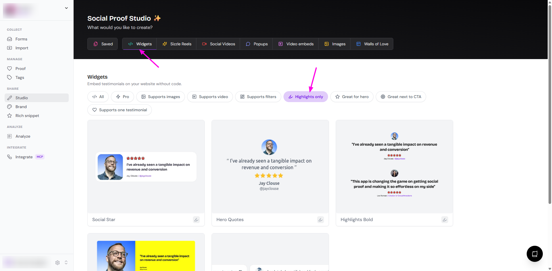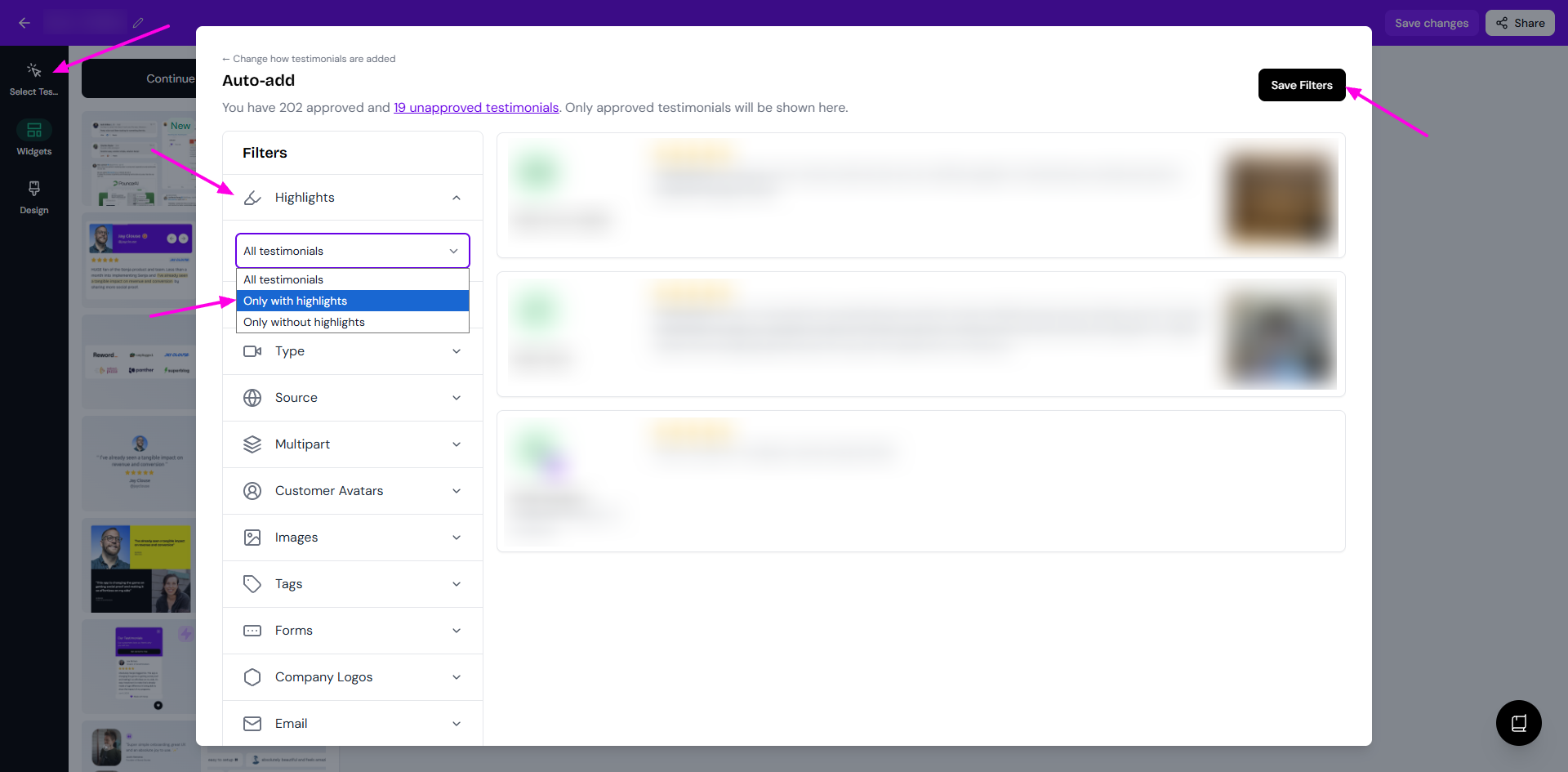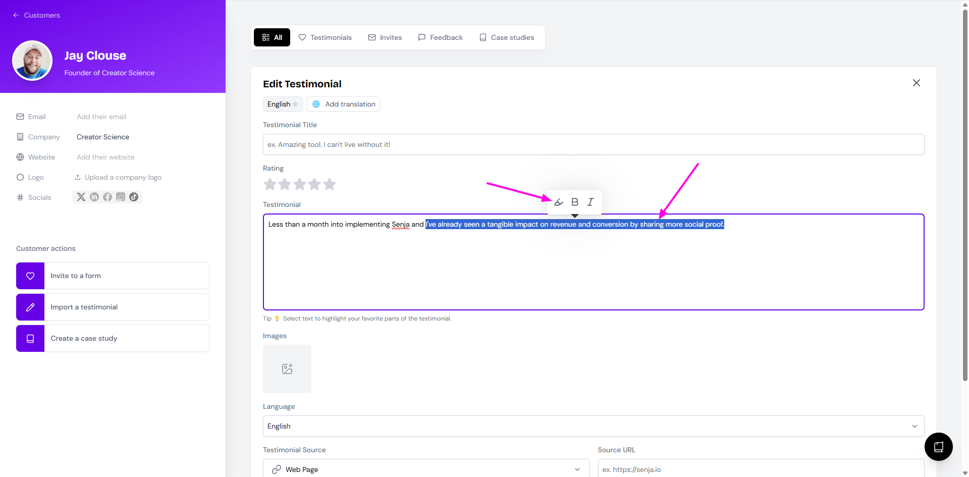 Add highlights to your testimonials